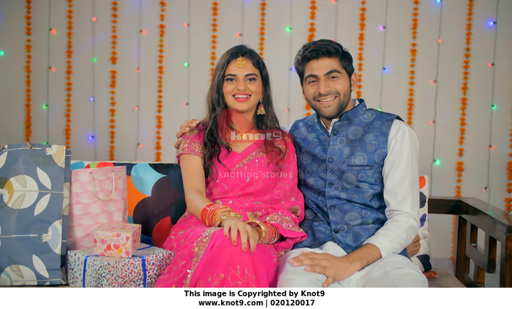 Newly wed couple celebrating their first Karwa Chauth together - Indian festival